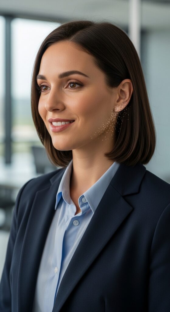It’s a minimalist’s dream update. The contrast between the sharp cut and the soft sparkle is everything. Try it on an asymmetrical lob for even more dynamic interest.