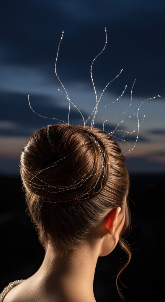 If your hair is pin-straight, create a light wave with a curling wand or braids. The key is softness. This isn’t for sleek, tight styles. You want movement, so the sparkle appears and disappears as you turn your head.