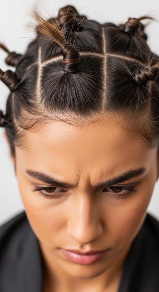 Frizz usually means you touched the hair too much while damp, or the wrapping wasn’t smooth. Make sure each wrap is flat and overlapped.