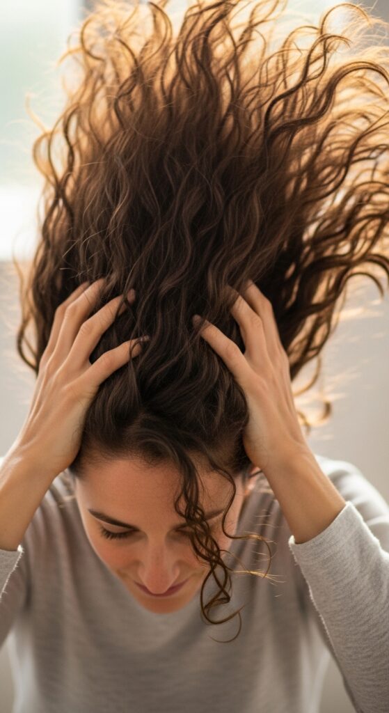 If your mousse left a slight cast (a crunchy feeling), gently scrunch the curls upwards towards your scalp to break it. This will soften the curls while keeping their shape. They should feel soft, not stiff.