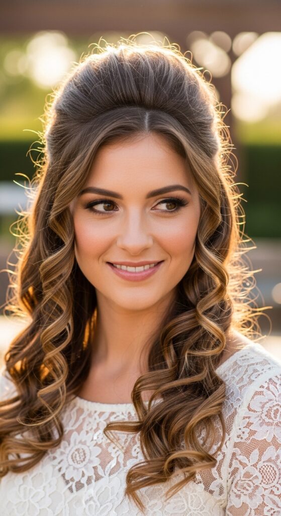 After unwrapping, simply gather the top section of your curls and secure it with a claw clip or a pretty ribbon. It gives major vintage, romantic vibes with zero extra effort.
