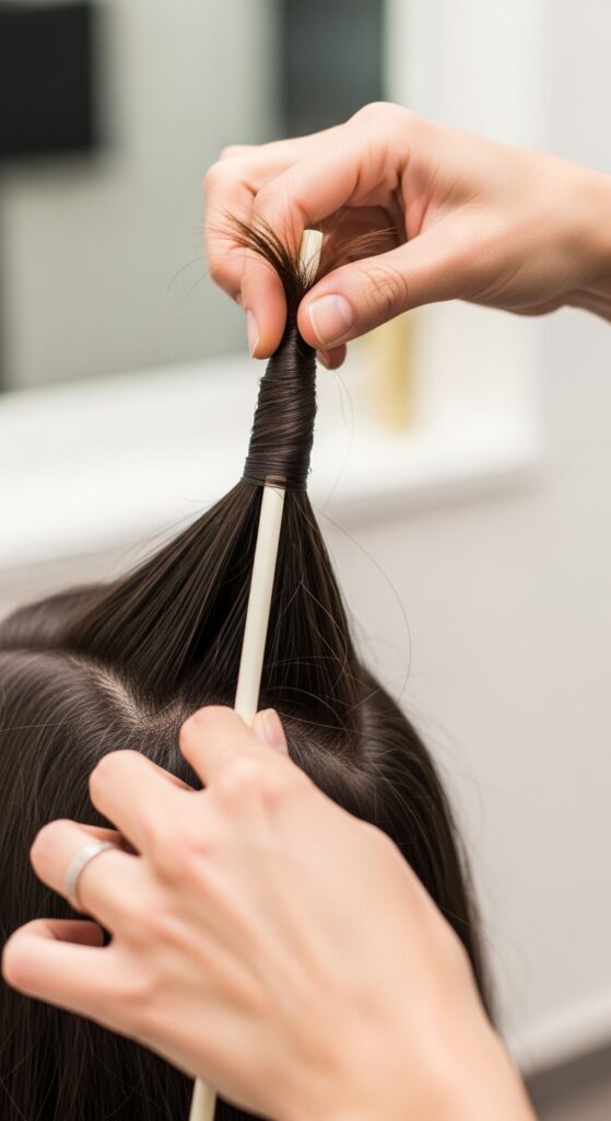 The key is to wrap neatly and tightly, keeping the hair flat against the straw. Overlap each wrap slightly. This isn’t a loose, messy twist—think precise and controlled. You’re basically creating a mini, spiral perm rod.