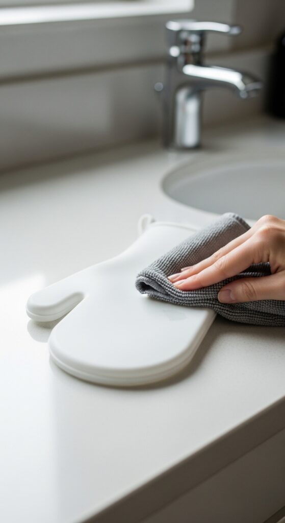 To keep it effective, keep it clean. Silicone mitts just need a wipe with a damp cloth and a little soap. For fabric ones, check the label, but most can be hand-washed gently.
