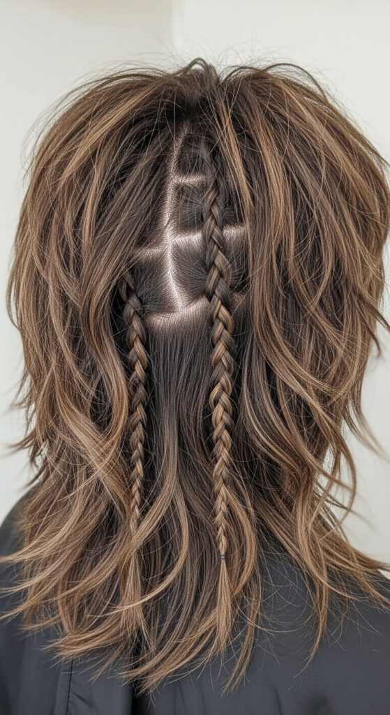 The shag cut is all about layers and texture. Add a few face-framing interlaced braids within those layers. They’ll move with the cut, adding a bohemian, artistic edge.