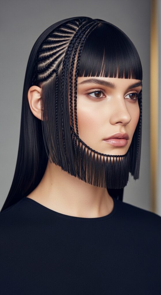 It has that vampire haircut allure—dramatic, a bit undone, and fiercely beautiful. The braids add structure to the romance, keeping it from looking chaotic. It’s a powerful style statement.
