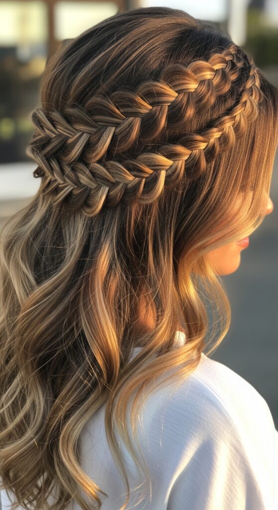 The braids become the decoration itself. Let the rest of your hair flow down freely. It’s intricate yet casual, perfect for a day you want to feel special without trying too hard.
