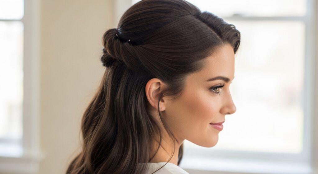 The basic half-up style can look juvenile. The upgrade is all in the technique of securing the top section. Instead of just grabbing hair and putting a clip in, create a small, intentional twist or braid.