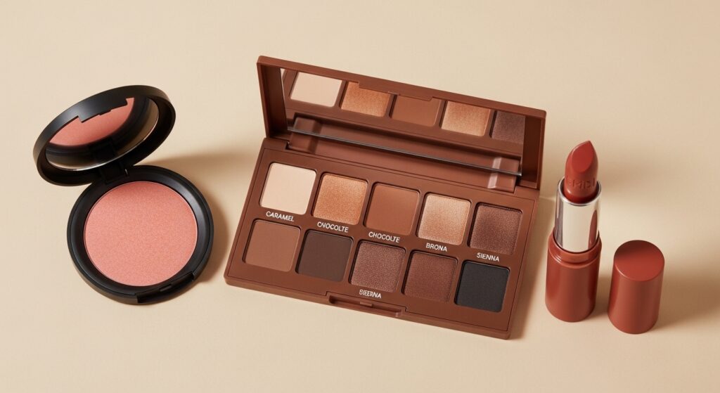 • Cheeks: Peachy or terracotta blushes look incredible.