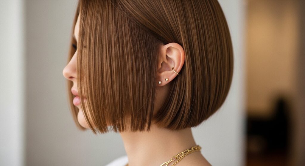 A precision bob is a statement cut. In a solid, glossy caramel brown, it becomes the epitome of sophisticated 2026 hairstyles. The warmth of the color keeps a blunt cut from looking too severe on pale skin.