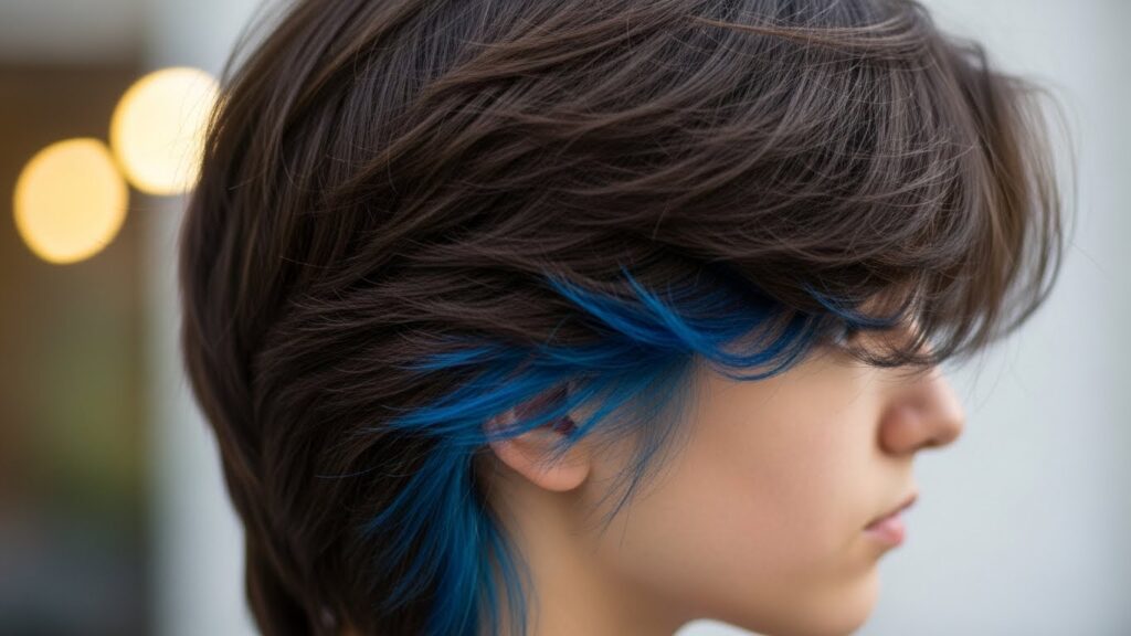 This style diverges from balayage or ombré, which are designed to be visible and blend from dark to light. Peek-a-boo color is intentionally separate. It creates a striking, almost graphic contrast when revealed. Originally popularized in the early 2000s with chunky blonde streaks under dark hair, the trend has evolved dramatically. Today, it’s a gateway for experimenting with unnatural colors without a full commitment, allowing professionals, parents, or anyone with a conservative dress code to hold onto a piece of personal rebellion.