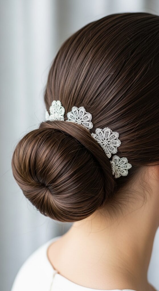 For a quiet luxury bob or longer hair, a low bun is a classic. The issue is flyaways and slip. After twisting your bun into place, use small lace clips instead of bobby pins to secure the perimeter.