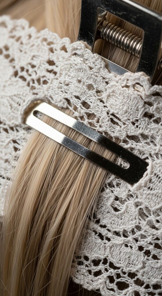 Then, snap the extension clip directly onto the lace clip. The lace provides a grippy barrier that locks both in place. It’s a total game-changer for extension security.