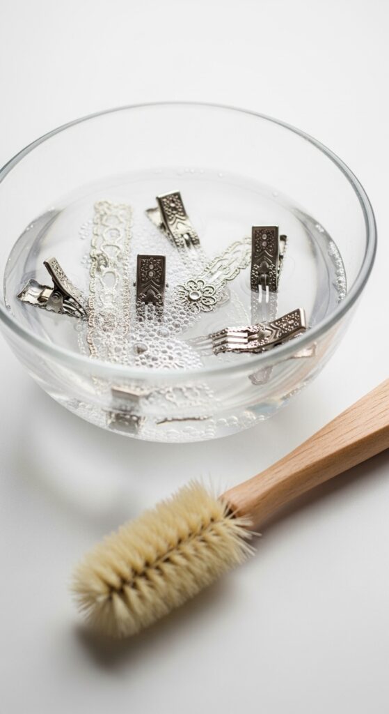Use a soft toothbrush to gently scrub the lace lining, rinse thoroughly, and let them air dry completely on a towel. This removes hair product buildup and restores their holding power.