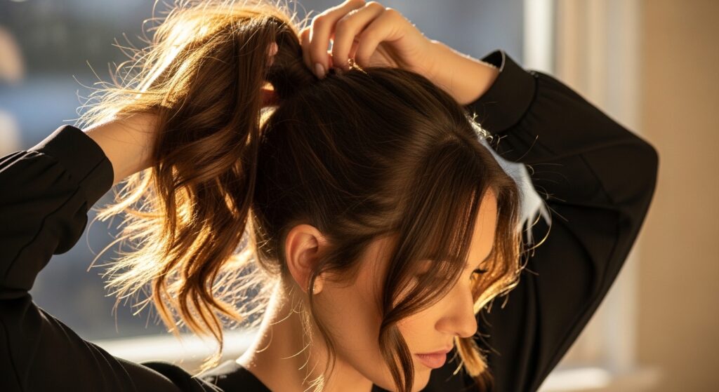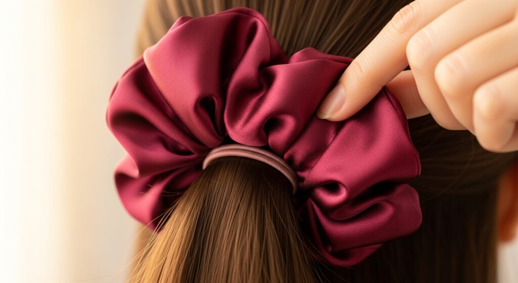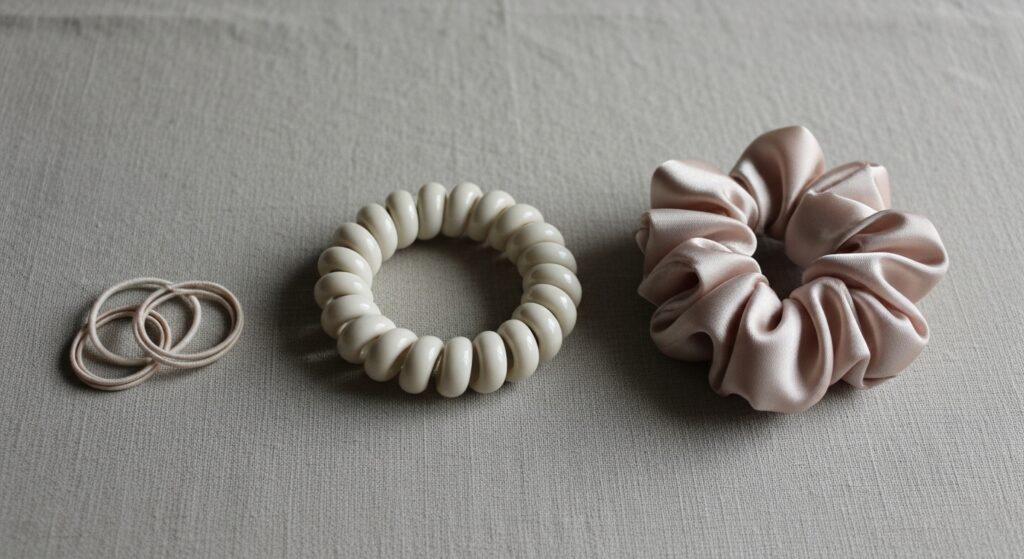 You don’t need much. In fact, the right tools prevent damage. First, a large, smooth coil hair tie or a satin scrunchie. These create less breakage and won’t snag.
