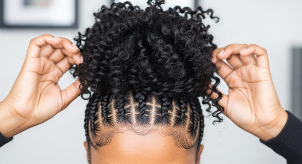 For very tight coils or 4C hair, ensure hair is well-moisturized. You might use a satin scarf to smooth the front before sectioning for a sleek look.