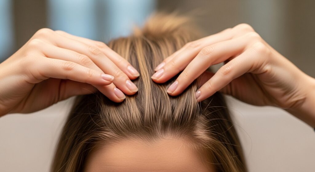 Gently lift this section straight up. This is the hair we will secure separately to act as a volume pillar. Clip this top section out of the way for a moment.