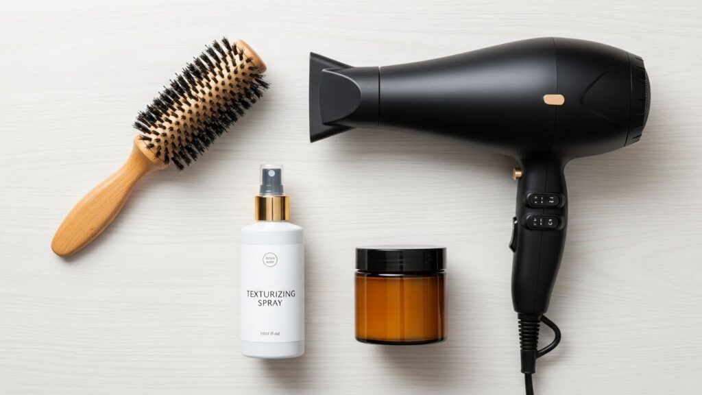 Essential Tools: Invest in a good quality texturizing spray, a light-hold pomade or wax, and a small round brush for blow-drying your bangs. A fine-tooth comb is perfect for sleekening your fringe.