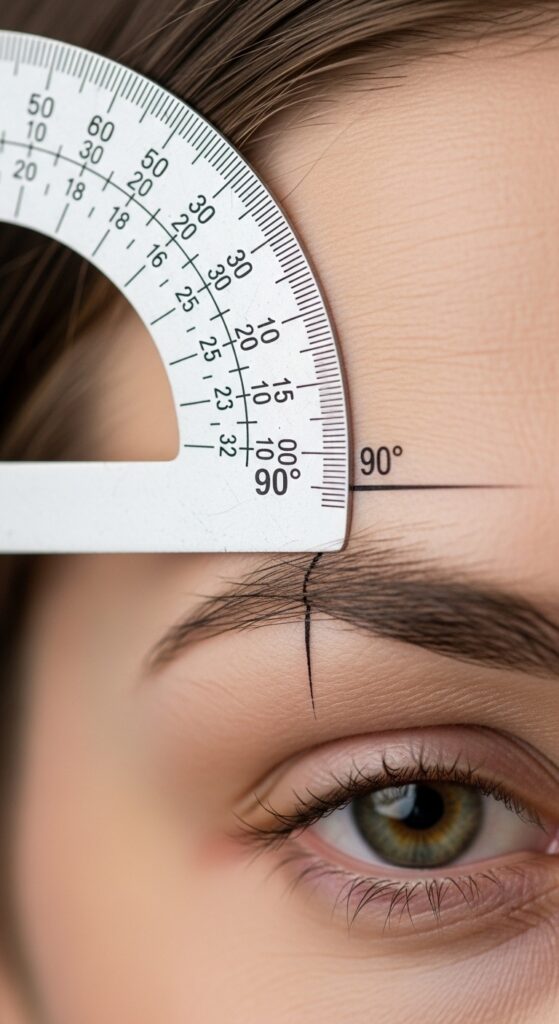 This is our starting point. Hold the protractor’s flat side along your eyebrow, pointing straight back. The 90-degree mark shows you the classic, centered ponytail position.