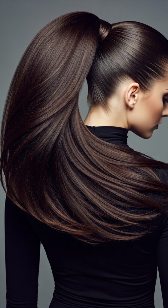 Then, smooth the top layer over it. This creates a slight, rounded “peak” at the base of your ponytail. It adds volume and makes the angle look even more intentional and lifted.