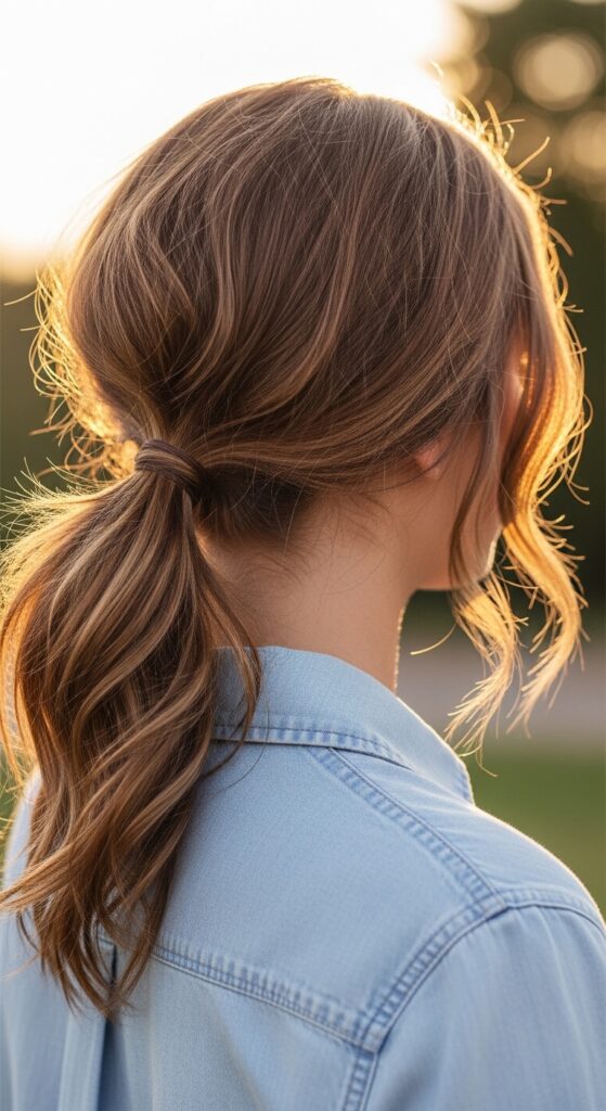 You’ll secure the pony behind your ear on the opposite side. This creates beautiful, dramatic asymmetry. It feels modern and artistic, a great way to play with the principles of an asymmetrical lob in a ponytail form.