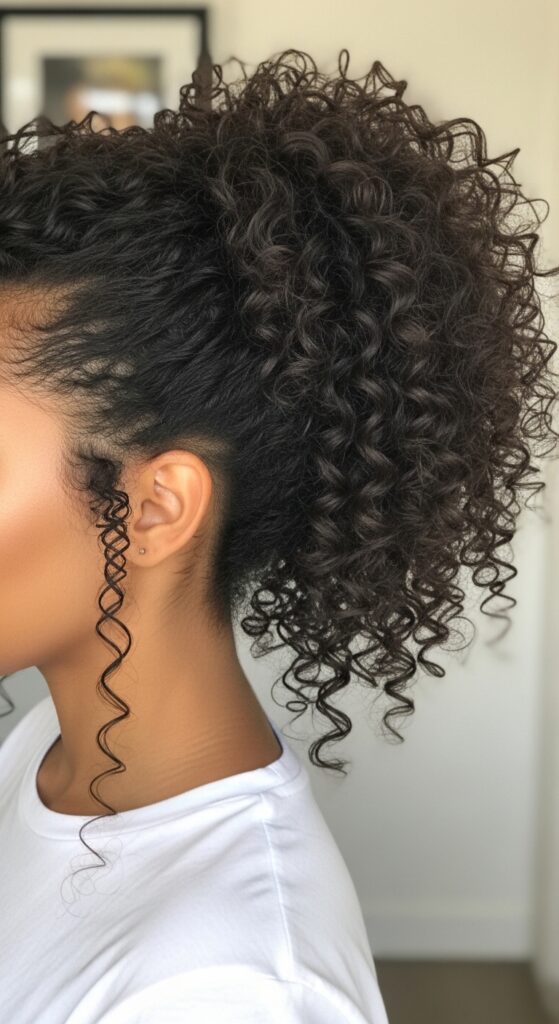 Use a soft, coil-friendly elastic (like a scrunchie or a telephone cord tie). The angles will define your shape beautifully, and the volume you naturally have will make the style pop.