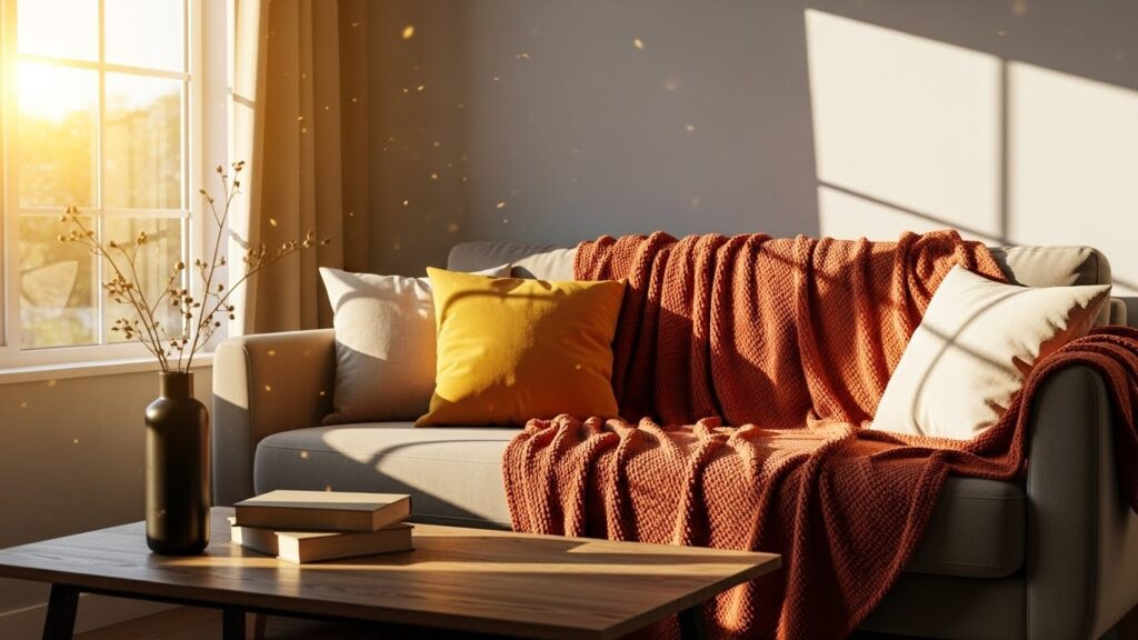 Introduce warmth through textiles: a throw blanket in a chunky knit of burnt orange, velvet pillows in mustard yellow or terracotta, or a rich, cinnamon-colored area rug. In your living room or dining area, decor pieces like ceramic vases in matte glazes, amber glassware, or dried pampas grass in a rusty hue can add instant seasonal texture. Even your table setting can get an upgrade—think linen napkins in cream, copper flatware, and dinner plates with a subtle rust-colored rim.