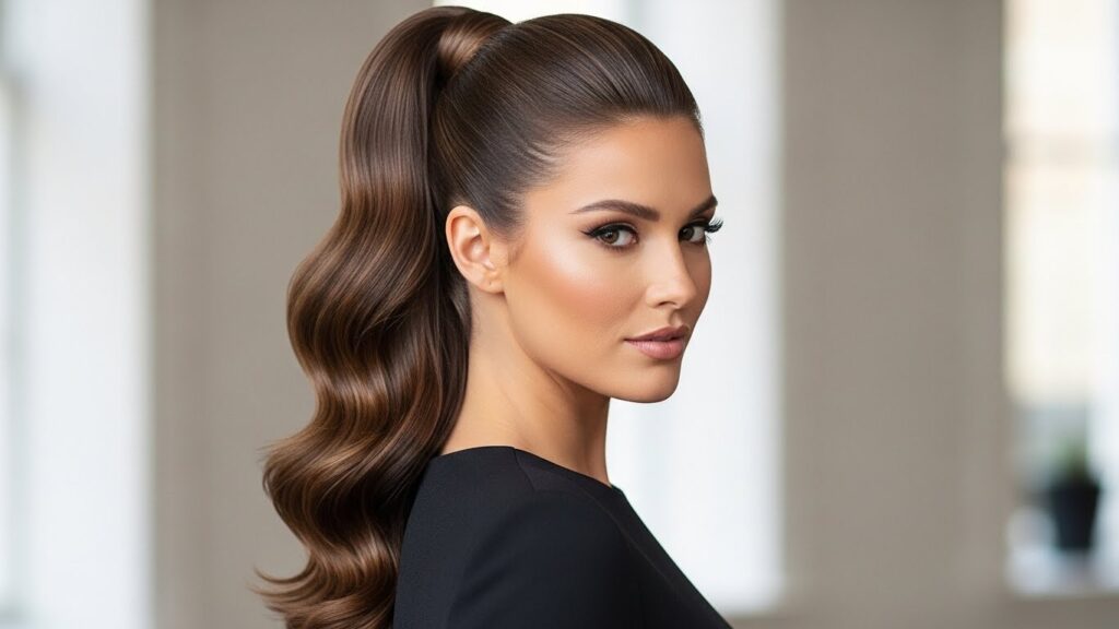 For an extra touch of quiet glamour, use a curling iron to add a soft, loose wave to the length of the ponytail, or gently tease the tail for a fuller, more luxurious effect. Finish with a light-hold hairspray or a shine serum to tame flyaways and create a polished silhouette. This is a powerhouse style that manages to be both professional and strikingly elegant.