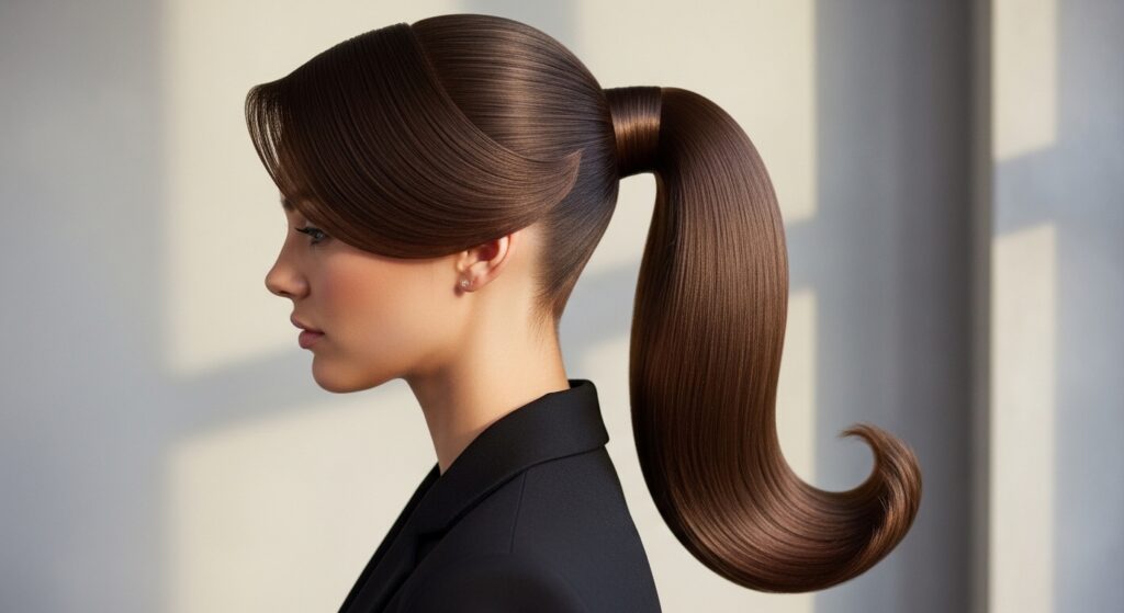 This step is what turns a basic ponytail into a sleek, modern style. It’s a detail that makes a huge difference, especially for looks like a sharp asymmetrical lob pulled back.
