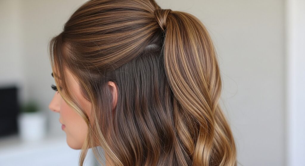 If a full ponytail feels too severe, a half-up style can be just as secure. It keeps the hair out of your face while offering a more relaxed feel. The key is securing the top section well.