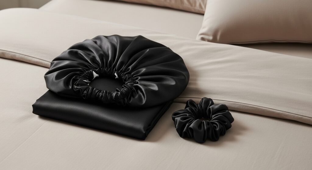 Before bed, loosely gather your hair at the crown of your head and secure it with a satin scrunchie. This “pineapple” method preserves volume and prevents frizz caused by cotton pillowcases.