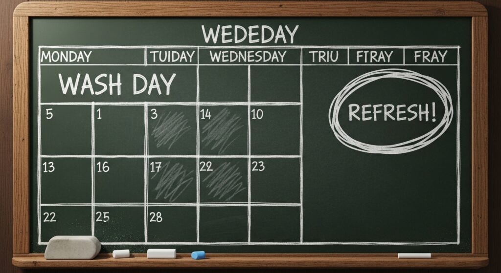 You can refresh daily if needed, but listen to your hair. If it starts to feel coated or heavy, that’s a sign to wash. For most, a solid refresh on Wednesday or Thursday gets them to wash day.
