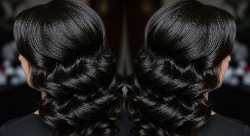 Then, add deep side parts, twist small sections away from your face, or accessorize with velvet scrunchies or delicate chains. The refresh gives you the full, dramatic body needed to pull off this aesthetic beautifully.