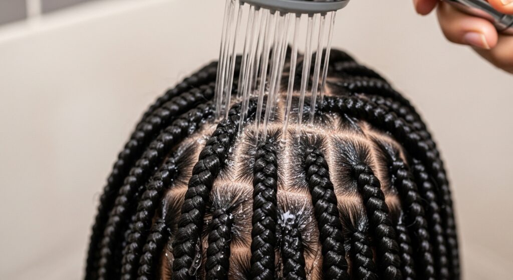 This method works for both traditional and knotless braids. For knotless, just be extra gentle at the root where the braid starts. The application is the same—focus moisture from the midshaft down.