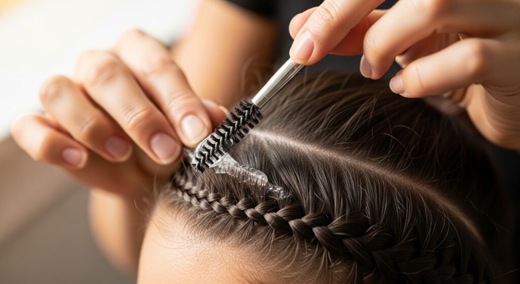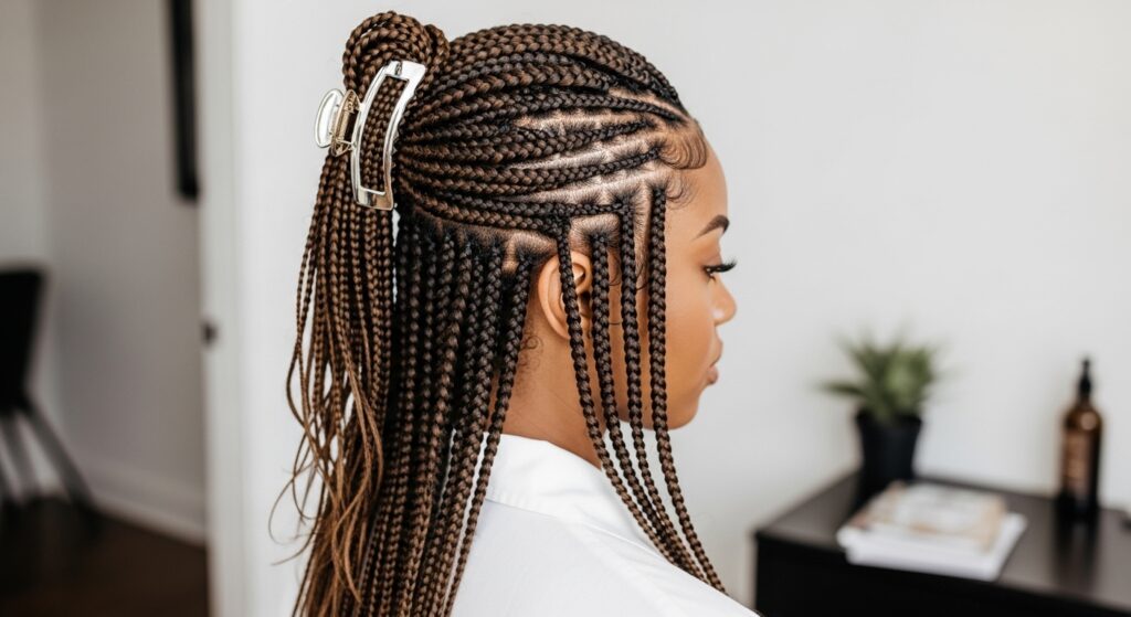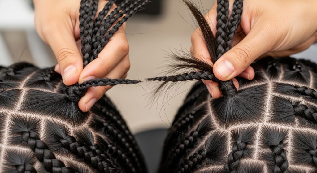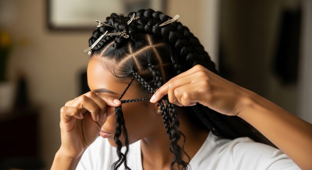 Working neatly prevents tugging and loosening. Clip up all your braids except for the section you’re working on. This keeps things organized and stops you from accidentally pulling on other braids.