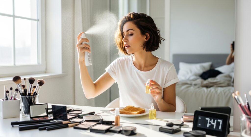 You don’t need a cabinet full of products. In fact, less is more here. The goal is lightweight hydration that won’t cause buildup.