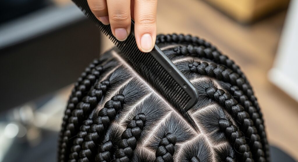 Fuzzy parts can age your braids fast. Taking five minutes to sharpen them up makes a dramatic difference. Use the pointed end of a rattail comb or a tint brush.
