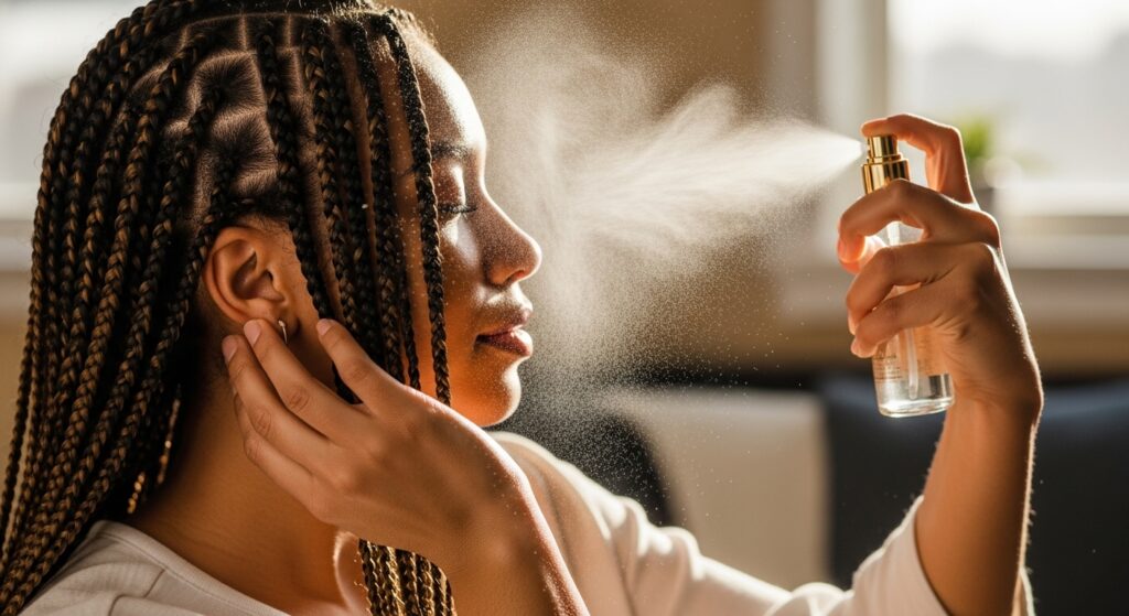Lightly spritz it over your braids. Not only will they smell amazing, but the feeling of the mist is refreshing. It’s a sensory upgrade that elevates your entire routine.