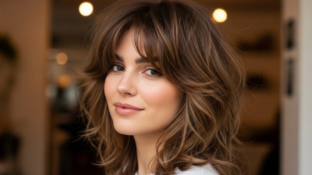 If any cut embodies the “relaxed but intentional” ethos, it’s the modern shag. This isn’t your 70s rocker shag (though that inspiration is there). Today’s shag is a masterclass in calculated chaos. Built with cascading layers, curtain bangs, and often a healthy dose of internal texturizing, this cut is designed to look better the less you do to it.