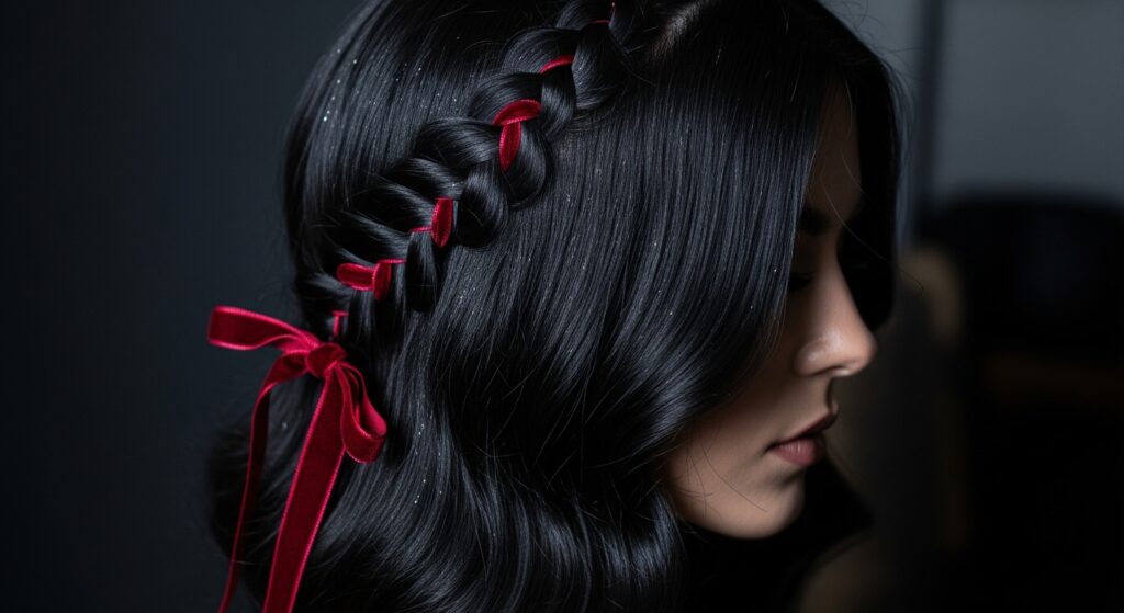 Short hair can feel limiting for dark academia or romantic goth hairstyles. Extensions unlock that dramatic length. Think deep colors, velvet ribbons woven into braids, and soft, ethereal waves.