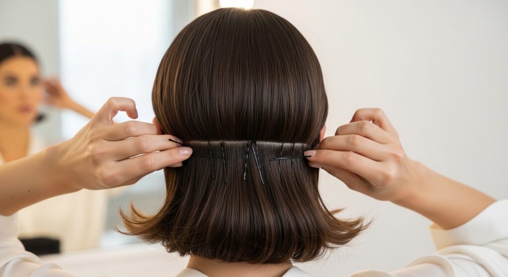Create a solid foundation. For bobs or lobs, a low ponytail or braid pinned flat works wonders. For pixies, you’ll rely more on layering the extensions over your top layers. The key is securing any loose ends so they don’t poke through.