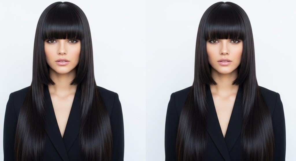 It requires precise, blunt-cut extensions. The look is graphic and stunning. Style your bangs perfectly straight and let the added length fall in a sharp, clean line. It’s a look that commands attention and feels incredibly modern.