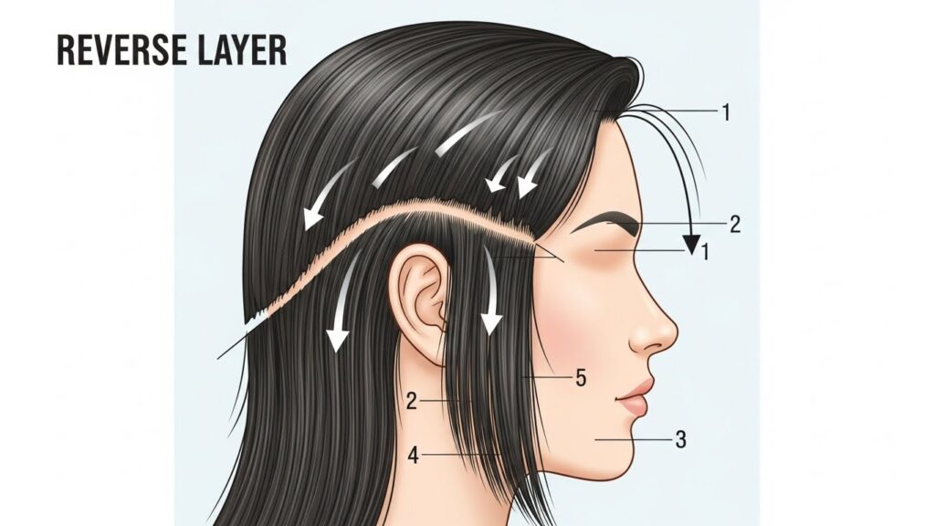 Reverse layers require thoughtful maintenance. Because the shape relies on the contrast between the top and bottom lengths, regular trims (every 10-12 weeks) are essential to prevent the underlayers from growing out and blending, which would slowly revert the shape to a more traditional, heavier one. The good news? Growing out a reverse layer cut is often easier than a heavily layered traditional cut. The longer top layers gracefully camouflage the growing underlayers, and the shape gradually softens into a more uniform length without awkward, spiky stages.