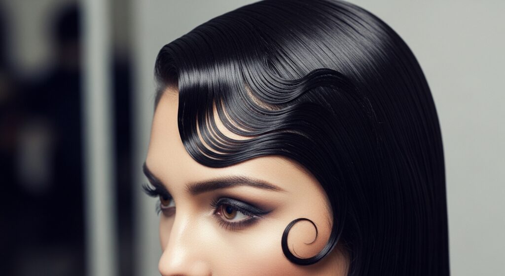 To soften it, try a “broken” finger wave. Create the wave pattern with gel and a comb, but then gently pull it apart with your fingers once dry. Pair it with a deep lip color for a modern, high-contrast look that’s utterly fierce.