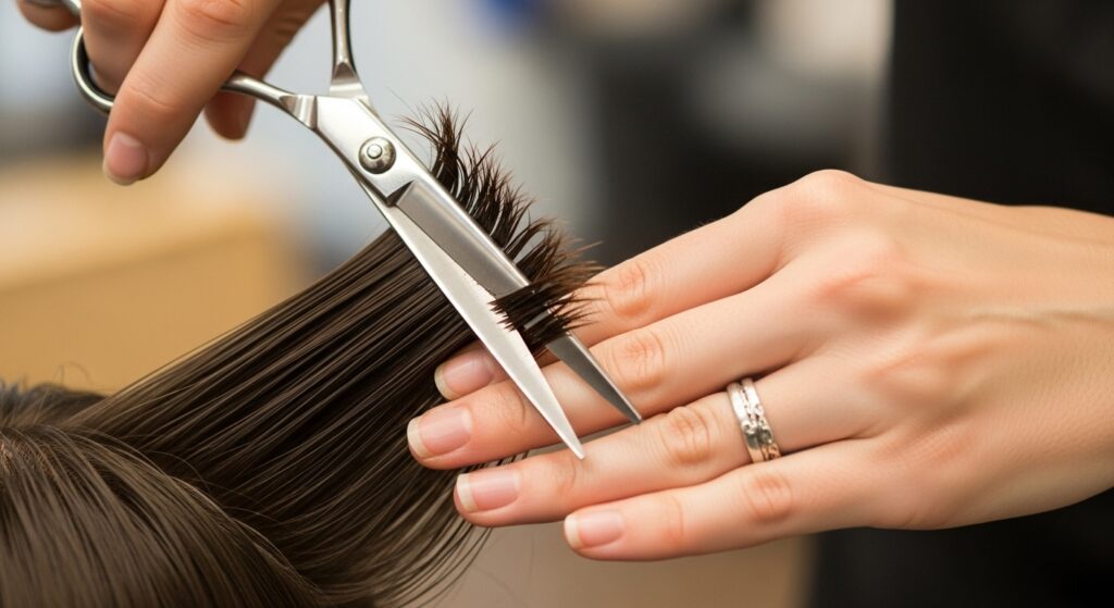 Verbally, you can say: “I’m interested in ribbon layers. I want to reduce bulk and add movement, but I want the layers to be very blended and seamless, not choppy. I’d like the hair to flow together like one continuous piece.” Be specific about your desired length and how much volume you want to retain. A crucial technical point to mention is your preference for point cutting or vertical slicing over horizontal blunt cutting to create softness within the section.