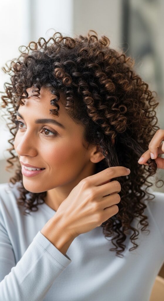 After the initial shake, let the curls settle for a minute. Then, with your head upright, use your fingers to gently separate any curls that are stuck together. Start at the ends and work up, never raking from the roots.