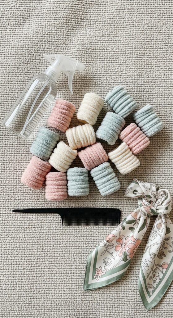 You don’t need much! The core item is a set of 14 rag rollers. You can buy a ready-made set online or make your own from strips of soft cotton or flannel fabric. The 14-count is perfect for a full head of medium-length hair.