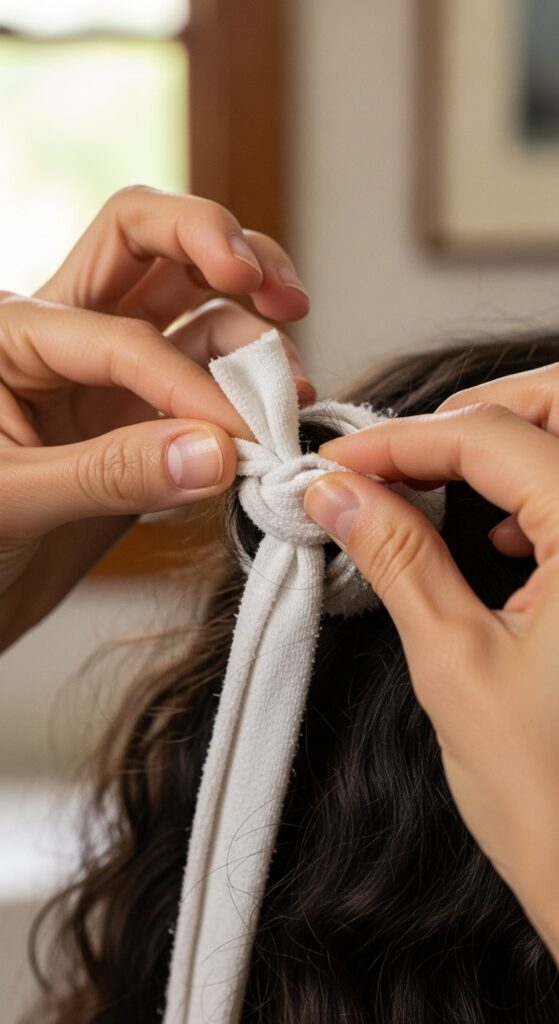 4. Once you reach your roots, tie the two ends of the rag into a secure knot or a bow.