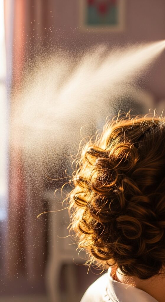 To lock in this gorgeous style, a light hold hairspray is your friend. Hold the can at arm’s length and mist lightly over your curls. Avoid heavy sprays that will make your hair crunchy or stiff.