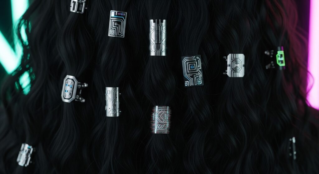 Take small, random sections and twist them away from the face, securing them with shiny, geometric clips or even safety pins. The contrast between the soft, romantic ringlets and the hard, shiny accessories is the whole point.