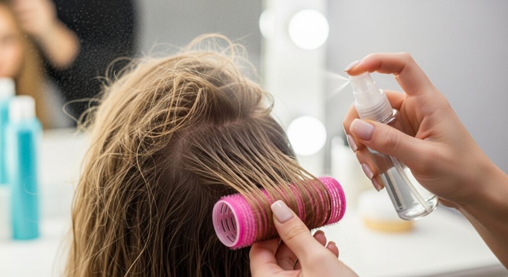 Once all curlers are in, I gently tousle the roots to lift them. This prevents flatness. Then, I always, always protect the set.